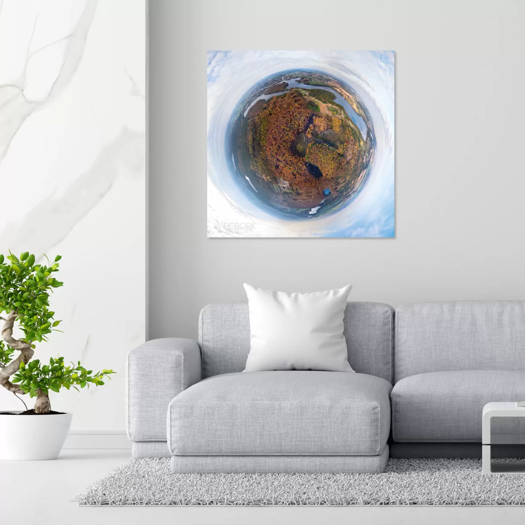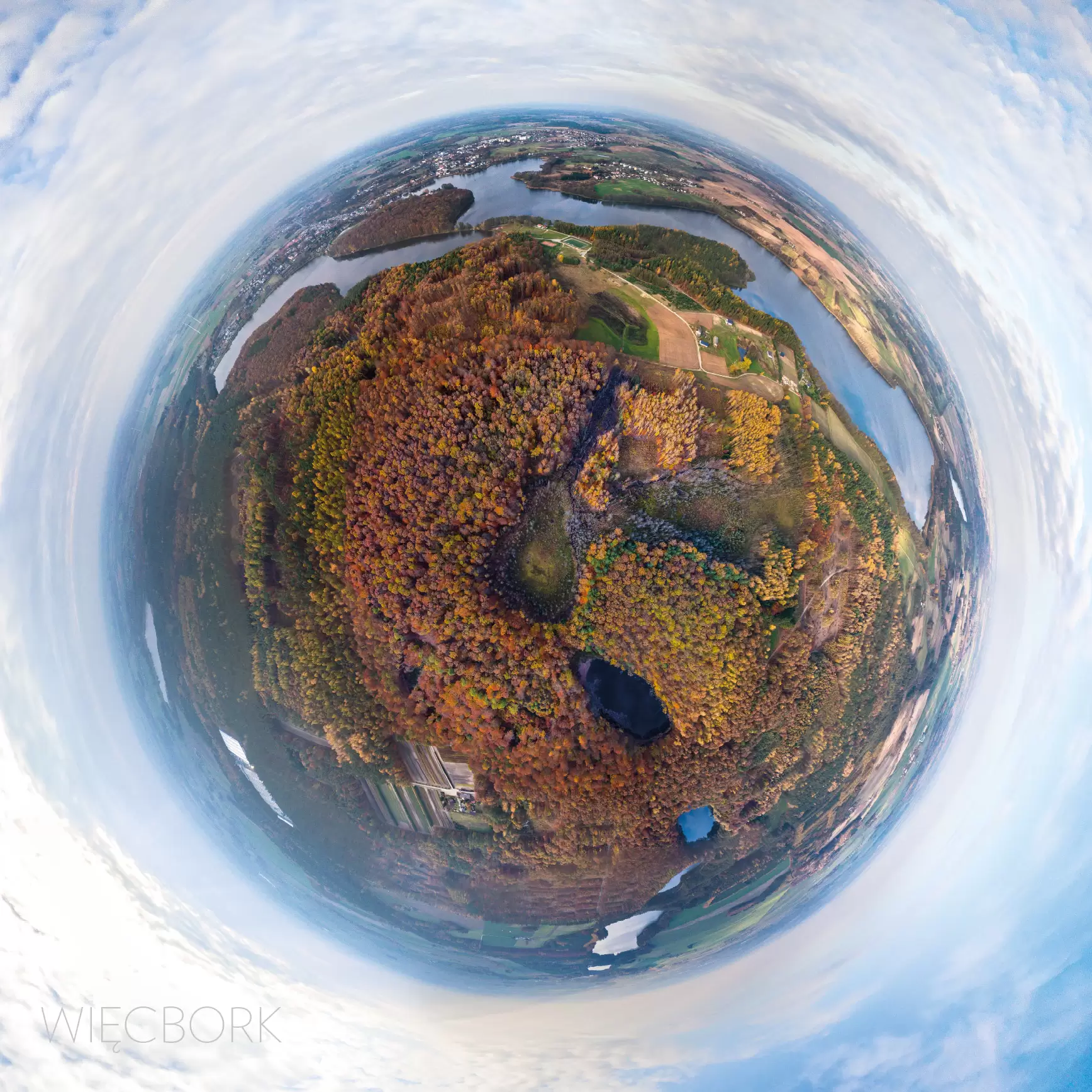 Wysokiej rozdzielczości fotografia przedstawiająca gród wczesnośredniowieczny w Raciążu. z lotu ptaka.